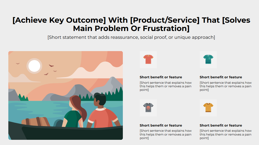 A clear title and a supportive subtitle to highlight your product benefits and a clear value proposition.