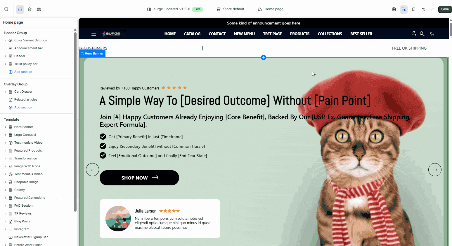 - Click Edit theme on your active Surge theme