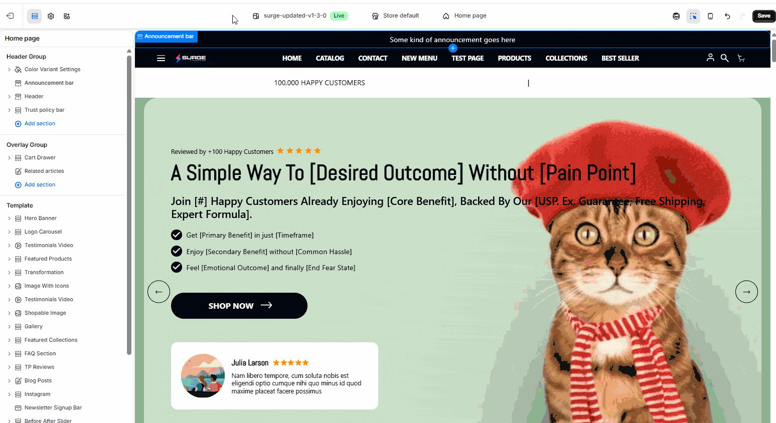 From the editor flow shown, this section can be quickly added via the Theme Editor and customized to match your store’s design.