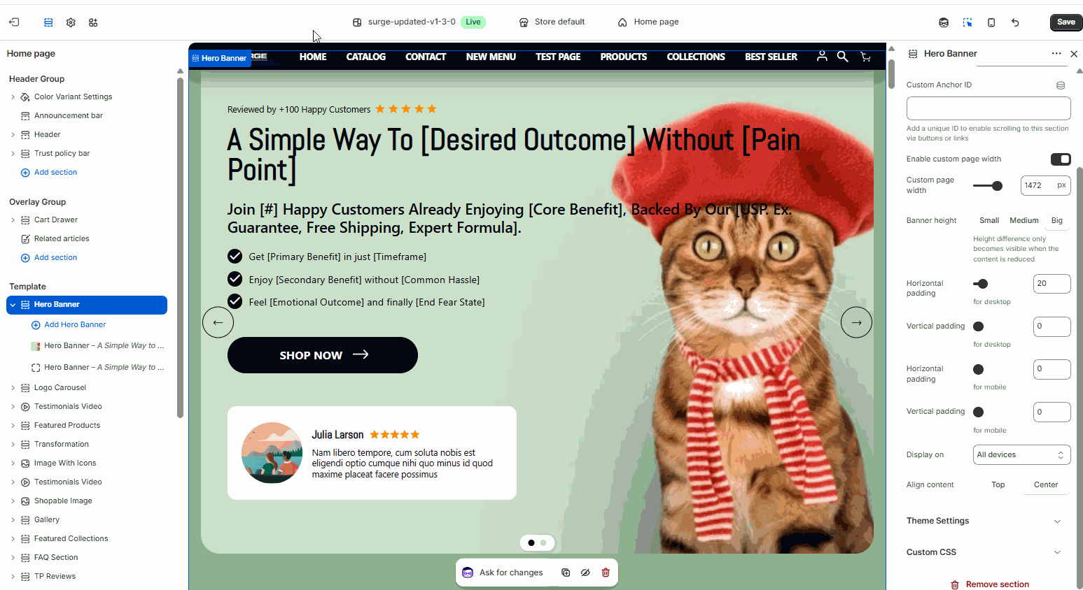 Follow these steps to configure the Rich Text section in your Surge theme: